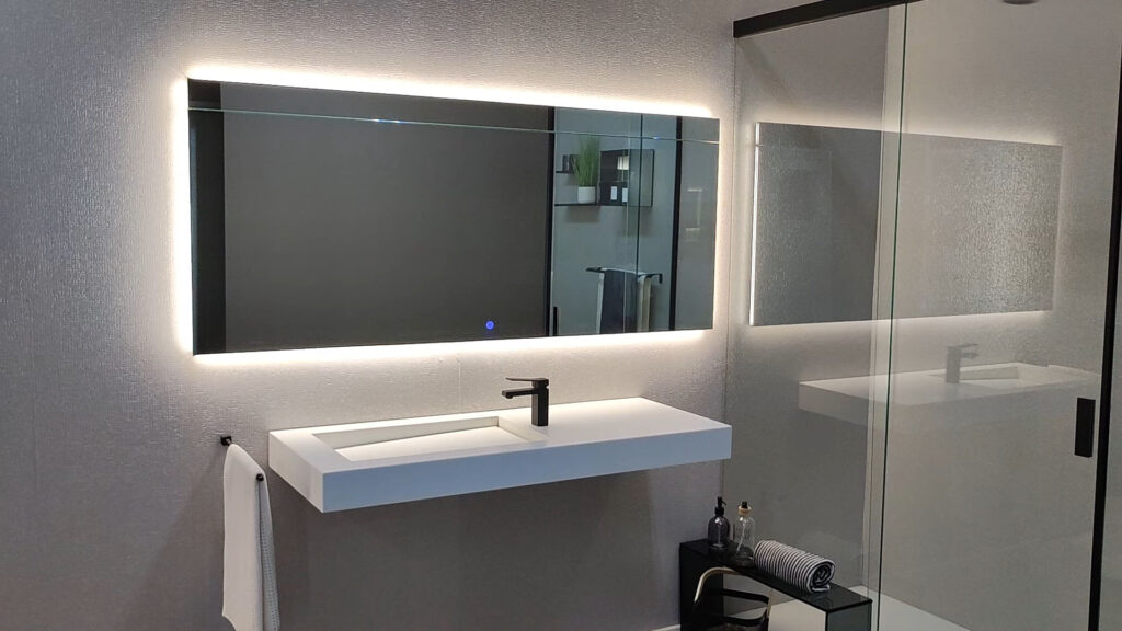 Ahí es donde entra nuestra innovación: hemos desarrollado un sistema exclusivo que genera un efecto CERO SOMBRAS, manteniendo el diseño limpio y elegante, pero aportando una luz directa, envolvente y sin ángulos muertos. El resultado es una iluminación perfecta que transforma por completo la experiencia frente al espejo.